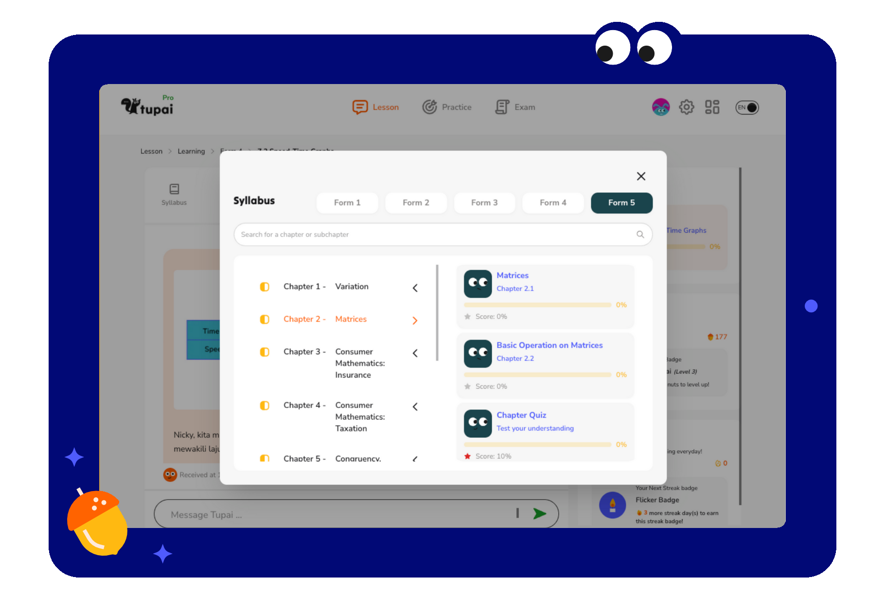 Tupai supports secondary school KSSM and IGCSE syllabus (KSSR coming soon).