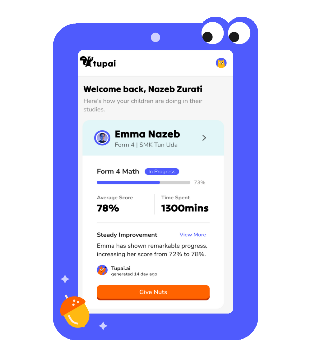 Help your child get to understanding with Tupai, an AI tutor that explains from different viewpoints, and can take any of your child’s questions.